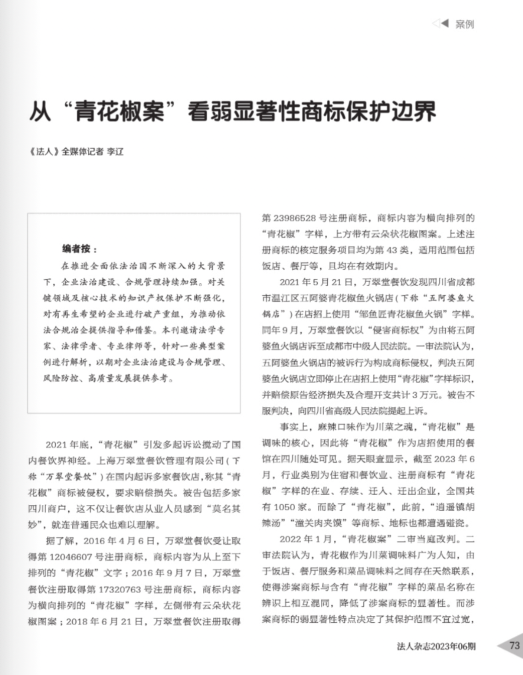 通化辉知简讯 | 辉知队黄俊益律师应“法治日报”旗下杂志邀请,就“青花椒”案发表专家点评